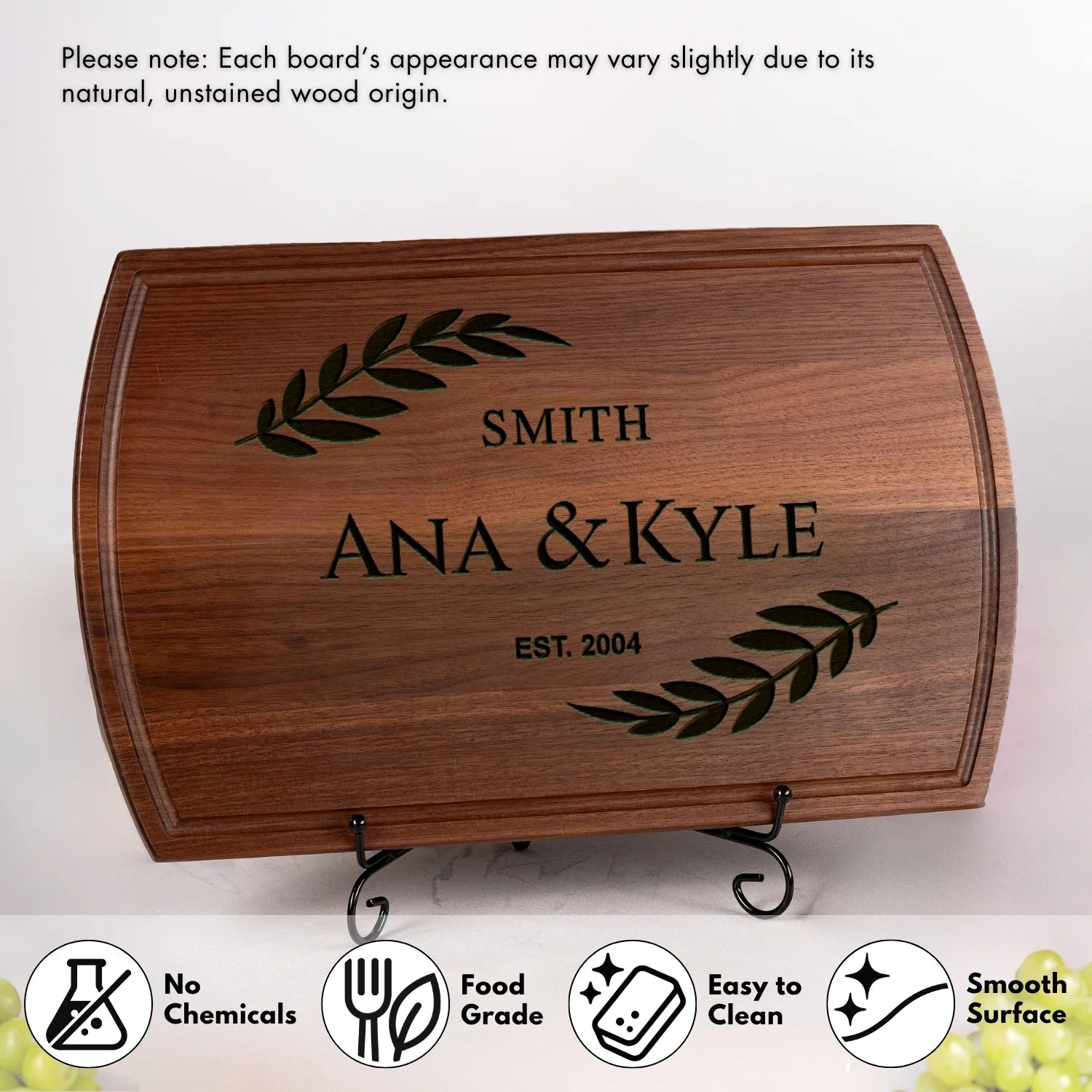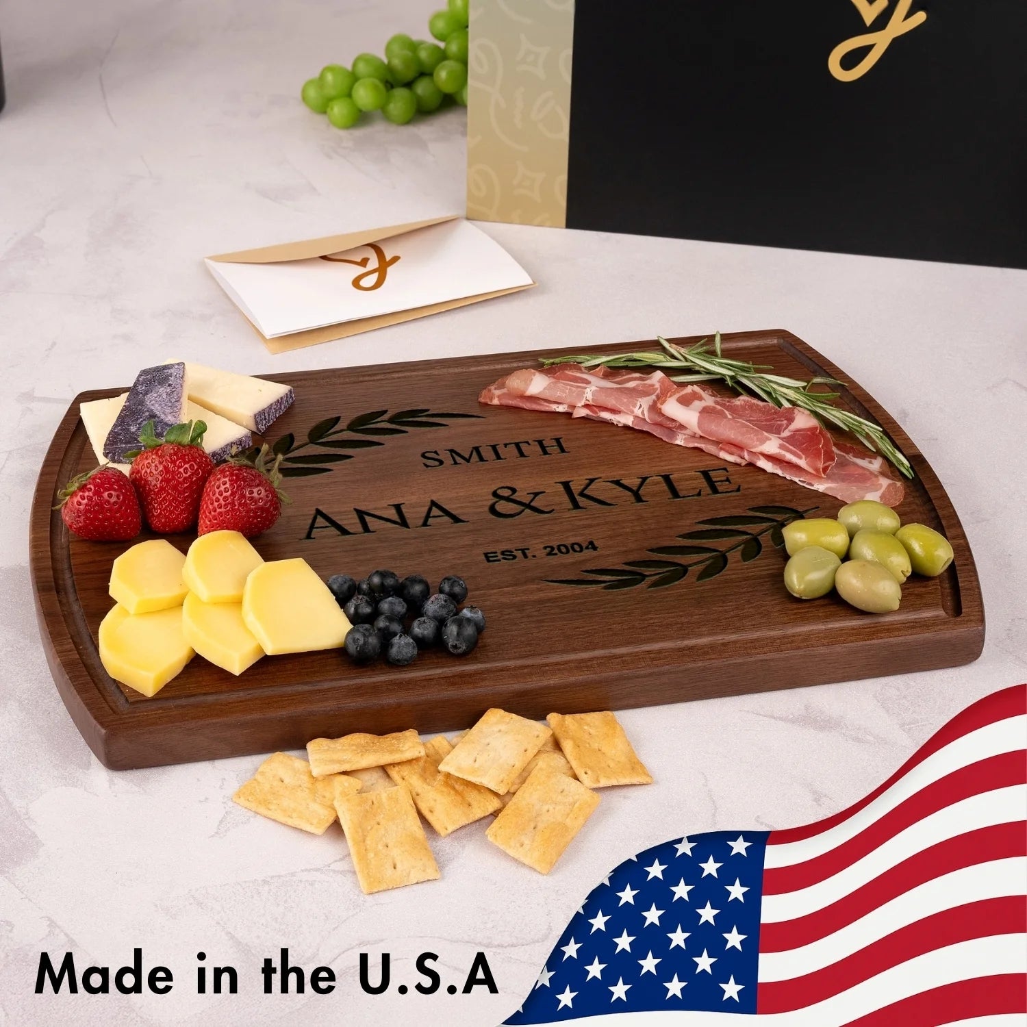 Whether you're slicing fruits and vegetables or serving cheese and charcuterie, this personalized cutting board adds a touch of elegance to your kitchen. The perfect gift for weddings, anniversaries, bridal showers, or any special occasion!