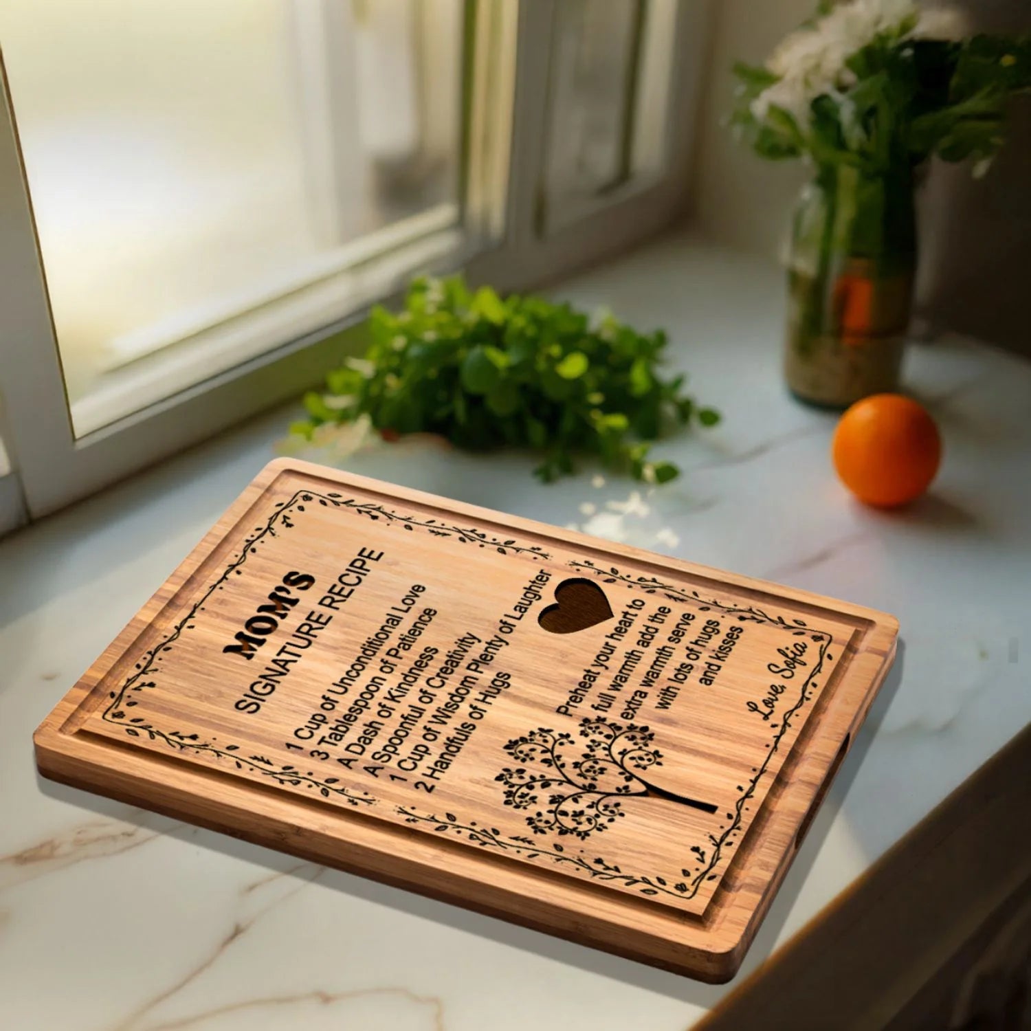 Celebrate Mom with a Custom Engraved Cutting Board – perfect for Mother’s Day, birthdays, or any occasion! Featuring a heartfelt recipe, it’s a loving tribute to her warmth, patience, and endless care. A gift as special as she is.
