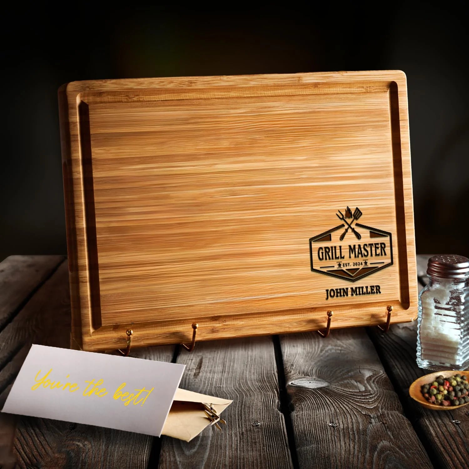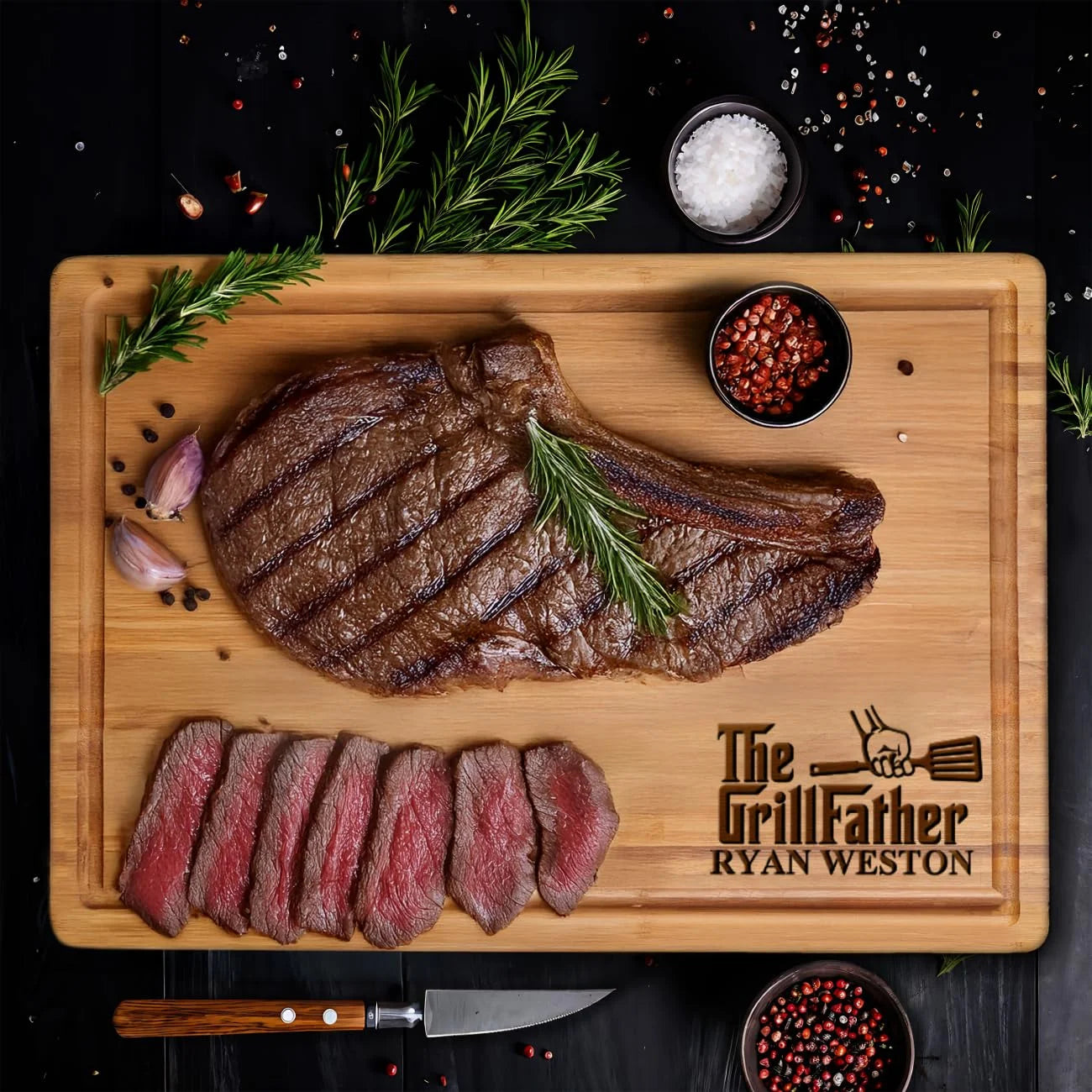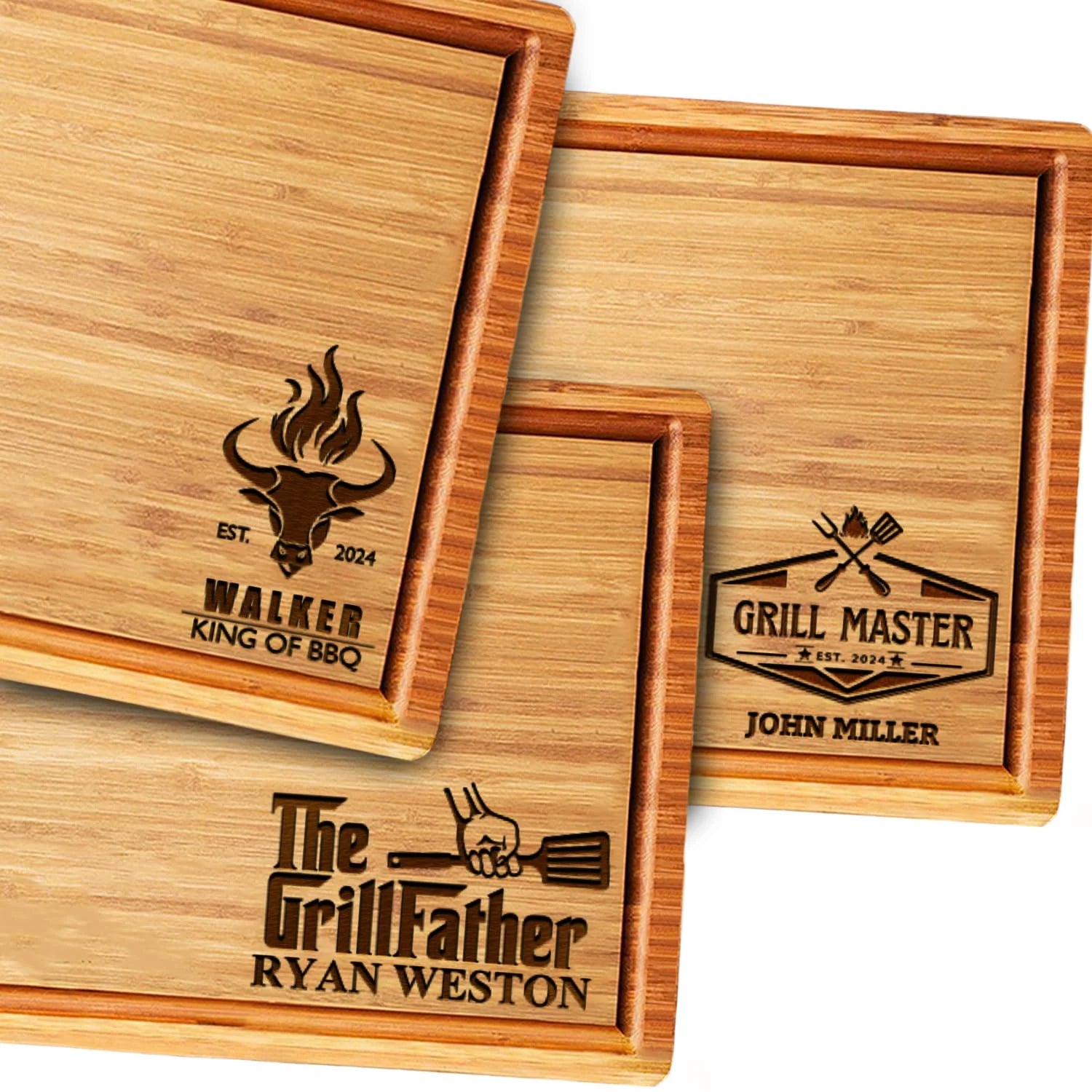 Honor Father's Day with a custom engraved cutting board, featuring a unique design. A meaningful and practical gift for any dad, husband, or special man in your life. Ideal for men who love grilling, whether at home, camping, or hosting a BBQ. Its spacious surface makes prepping meats, veggies, and more easy and convenient.